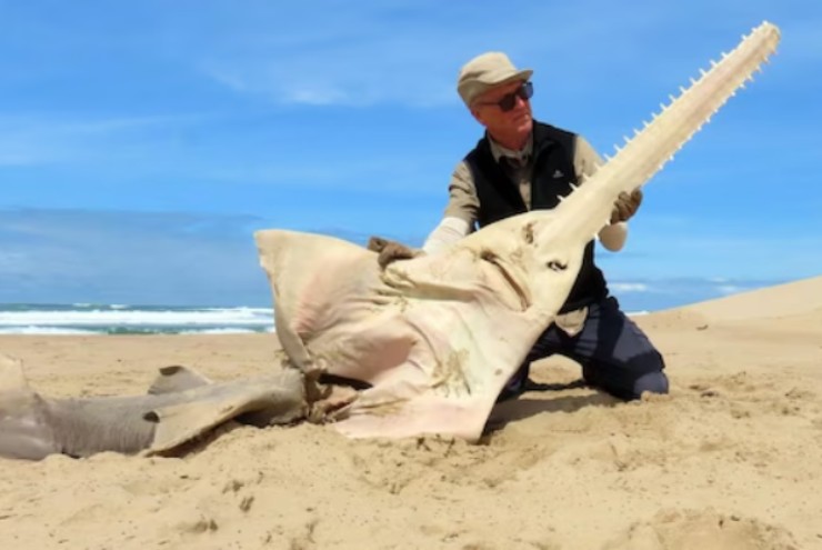 Nei pressi della foce del Fiume Birha, nella provincia sudafricana del Capo Orientale, è avvenuta una scoperta certamente non lieta. Il corpo di un pesce sega comune, appartenente alla specie Pristis Pristis, con una lunghezza che sfiorava i tre metri è stato trovato spiaggiato. Si tratta del primo ad essere rinvenuto sulle spiagge del Sudafrica da 26 anni a questa parte, facendo parte di un gruppo di elasmobranchi a dir poco raro, considerato dalla comunità biologica in “pericolo critico” di estinzione e per questo inserito all’interno della lista rossa dell’IUCN. Lo scorso 19 Settembre è stato un residente della zona a lanciare l’allarme, con l’intervento immediato da parte del naturalista Kevin Cole, impegnato presso l’East London Museum, che ha recuperato l’animale, indicato anche dai più autorevoli esperti come totalmente scomparso in prossimità di quelle acque.
