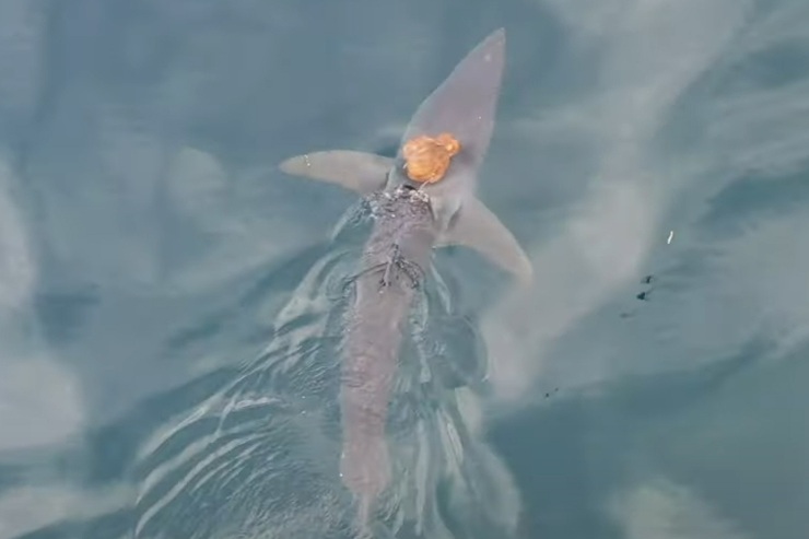 Durante una spedizione nel Golfo di Hauraki, al largo della Nuova Zelanda, un team di ricercatori guidato dalla biologa marina Rochelle Constantine ha osservato una scena a dir poco singolare: un polpo aggrappato alla testa di uno squalo mako. La pinna dorsale metallica dello squalo tradiva la sua presenza, ma ciò che ha attirato l’attenzione è stata una macchia arancione brillante, inizialmente scambiata per una boa o una ferita.